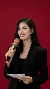 Hiện tại, mình may mắn được thực hiện điều mình đam mê. Được đứng trên sân khấu, làm nội dung, kể chuyện và phát triển bản thân mỗi ngày. Mục tiêu của mình là mở rộng nhiều hơn ở các lĩnh vực như talkshow, podcast, lifestyle, văn hóa – nghệ thuật, những không gian mà ở đó một người dẫn không chỉ cần kỹ năng, mà cần cả chiều sâu.