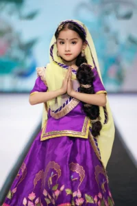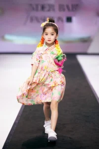 Emily Nhã Uyên (sinh năm 2017) gây chú ý khi xuất hiện nổi bật tại Asian Kids Fashion Week mùa 7 với phong thái tự tin và kỹ năng catwalk ấn tượng dù mới 6 tuổi.